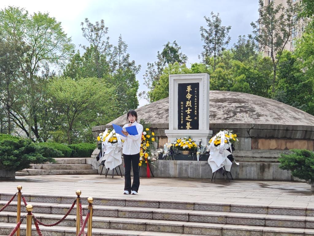 随后,团员代表向烈士敬献花篮,寄托哀思。大家手持黄白鲜花,有序地将鲜花放置碑前,缓慢绕场一圈,瞻仰烈士碑文,铭记英雄之名。