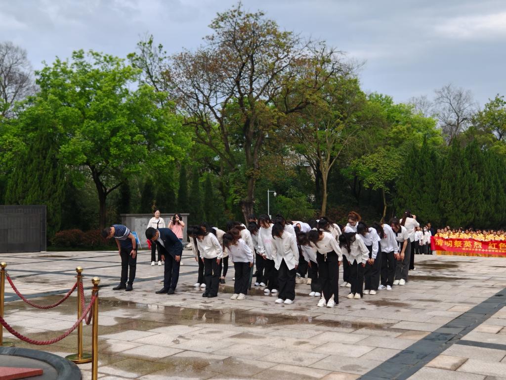 在革命烈士墓前,全体党员和优秀团员代表整齐列队,神情肃穆。主持人宣布活动开始,伴随着庄严高亢的旋律,全体师生高唱《中华人民共和国国歌》,歌声庄严洪亮,深情回荡。在奏唱国歌之后,全体师生集体面向纪念碑默哀、鞠躬,寄托无限哀思,表达深切怀念,致以崇高敬意。