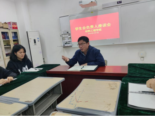 为激发学生会各部门负责人的工作激情,强化理想信念和工作意识,4月7日,材料工程学院召开“挺膺担当,勇为善为”的学生座谈会,座谈会由党支部书记刘书友主持。