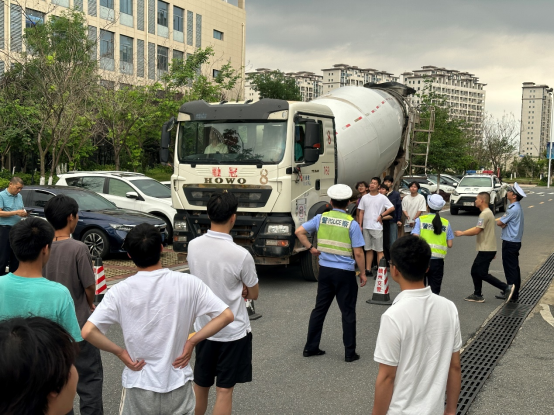 随后,师生们来到了学校内的观摩场地,进行了现场搅拌车视觉盲区观摩体验。在交警的指导下,师生们纷纷登上搅拌车,通过亲身体验,直观感受到了车辆视觉盲区的存在及其潜在的危险性。交警们还详细讲解了如何避免进入视觉盲区,确保行车安全。