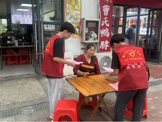 在唐龙社区,师生们向过往群众发放交通安全宣传资料,将交通安全知识送到社区居民手中,呼吁群众自觉抵制酒后驾驶、超速行驶、疲劳驾驶、闯红灯等道路交通违法行为,做到守法规、知礼让,安全文明出行。