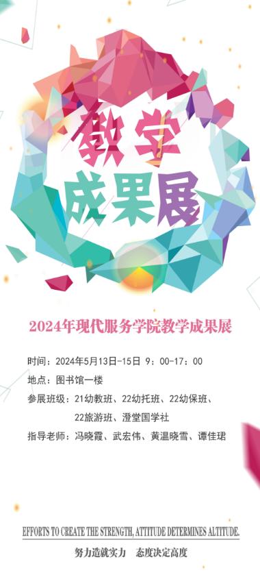 本次教学成果展旨在展示在现代服务学院党支部引领下,过去一年中所取得的教学成果以及我院在教育教学方面的创新与发展。我们深知,每一位老师都是学生成长道路上的重要引路人,您们的辛勤付出和无私奉献,为学生们提供了宝贵的知识和人生经验。因此,我们诚挚地邀请您来参观此次“教学成果展”,与我们共同见证学生们在学习道路上的点滴进步与成就。