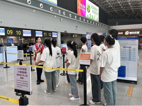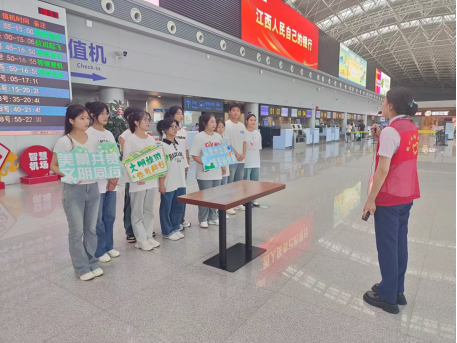 在“5.19中国旅游日”即将到来之际,为充分发挥党建引领作用,进一步营造文明旅游的社会氛围,促进校企双方协同发展,5月17日,德赢Vwin官方区域合作伙伴现代服务学院党支部副书记贺娇及党员任课教师陈洋喜等带队学院旅游专业部分学生志愿者来到赣州黄金机场开展“519·中国旅游日”活动。