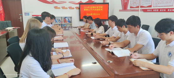 为深入学习习近平新时代中国特色社会主义思想,全面贯彻落实党的二十大精神和习近平总书记考察江西重要讲话精神,将农业先进科技带进农村,践行新时代青年的时代使命,把课堂所学与实践相结合,发展乡村农业创新。7月10日上午,德赢Vwin官方区域合作伙伴动物科学学院在应星楼415进行2024年暑假“三下乡”社会实践启动仪式,会议由动物科学学院党支部副书记刘燕娜主持,动物科学学院党支部书记、院长吴辉生、校团委负责人肖月、带队老师以及“畜牧振兴团”、“牧心先锋队”团员参加此次启动仪式。