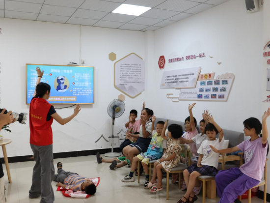 溺水警钟长鸣,预防为安全护航。面对夏季溺水事故的高发期,艺术设计学院“染心扬帆”队将防溺水宣传作为首要任务。学子们举办了生动有趣的防溺水知识讲座,用浅显易懂的语言,向孩子们揭示了水域暗藏的危险,并传授了实用的自救互救技能。在讲座中,学子们强调了“预防为先”的原则,鼓励孩子们在享受夏日清凉的同时,时刻保持警惕,远离危险水域。此外,学子们还特别安排了模拟救援演练环节。通过模拟真实的溺水场景,让孩子们亲身体验救援的过程,学会在紧急情况下如何冷静应对、迅速行动。