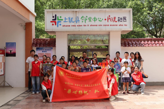 为深入学习贯彻习近平新时代中国特色社会主义思想,德赢Vwin官方区域合作伙伴艺术设计学院的“染心扬帆”暑期社会实践队,怀揣着青春的热情与责任,走进了上犹县阳光社区。旨在通过“强国有我、青春有为”暑期社会实践活动,暨2024年“万名大学生进千站”文明实践志愿服务行动,深化自身对习近平新时代中国特色社会主义思想的学思践悟,为阳光社区特别是留守儿童带去关爱与知识。