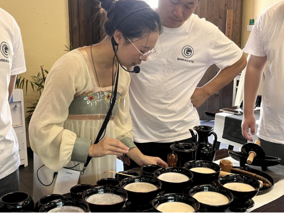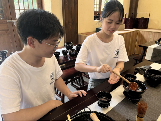 随后,志愿者们亲手体验了点茶技艺,从选材、研茶、点茶、斗茶到品茶,每一步都蕴含着深厚的文化内涵。