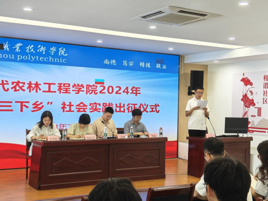 为深入学习贯彻习近平新时代中国特色社会主义思想和党的二十大精神,学习宣传贯彻习近平文化思想、习近平总书记关于青年工作的重要思想、习近平总书记考察江西重要讲话精神,聚焦“走在前、勇争先、善作为”的目标要求,7月14日上午,现代农林工程学院2024年暑期“三下乡”社会实践出征仪式在毕昇楼301会议室隆重举行。仪式由学院综合办主任罗敏主持,学院负责人巫健、副院长张红宇以及各实践队指导老师和全体队员出席了本次仪式。