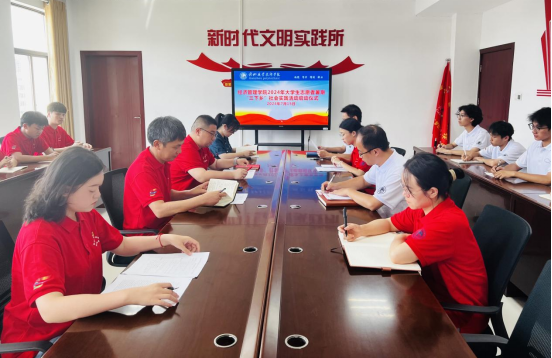 为深入学习贯彻习近平新时代中国特色社会主义思想,全面贯彻落实党的二十大精神,引导和帮助广大青年学生在与实践相结合的“大思政课”中“受教育、长才干、作贡献”,实现"走在前,勇争先、善作为"的目标要求。7月15日下午,经济管理学院大学生暑期“三下乡”社会实践活动启动仪式在阳明楼510会议室顺利举办。仪式由学院党支部副书记陈曦同志主持,学院负责人肖首荣同志、学院党支部宣传委员李闽老师及两支队伍16名队员学生、5名指导老师参加本次启动仪式。