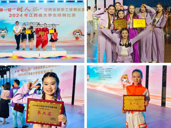 ·赛场上的凯旋:7月,我社师生参加了江西省大学生排舞比赛和第一届“树人杯”江西省教职工排舞比赛,凭借出色的表现荣获了大集体单曲规定动作第一名、小集体单曲自选动作第三名以及女子单人第二名和女子双人组第一名的优异成绩。这些荣誉不仅是对我们专业技能的认可,更是对我们团队精神和集体荣誉感的最好诠释。