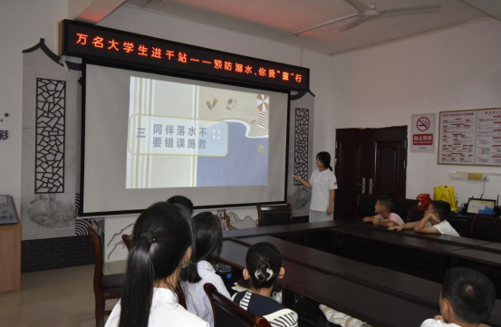 随后,一场生动有趣的防溺水知识讲座成为了活动的重头戏。实践团成员们利用多媒体和视频播放,将防溺水的基本知识、自救互救技能生动形象地展现在孩子们面前。通过互动问答形式,让孩子们在轻松愉快的氛围中掌握了关键时刻能救命的“秘籍”。