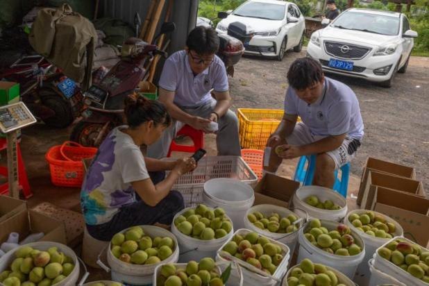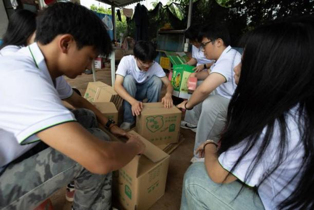 上午,在大阿镇政府果茶站站长郭华山带领下,队员们走进鹰嘴桃种植基地,实地调研了桃树的种植管理情况,与种植户进行了深入交流,详细了解了鹰嘴桃的品种选育、病虫害防治和市场销售等方面的情况。为了更好地体验农业生产销售过程,队员们还积极参与了鹰嘴桃的采摘和包装工作,亲身感受了农业劳动的辛劳。