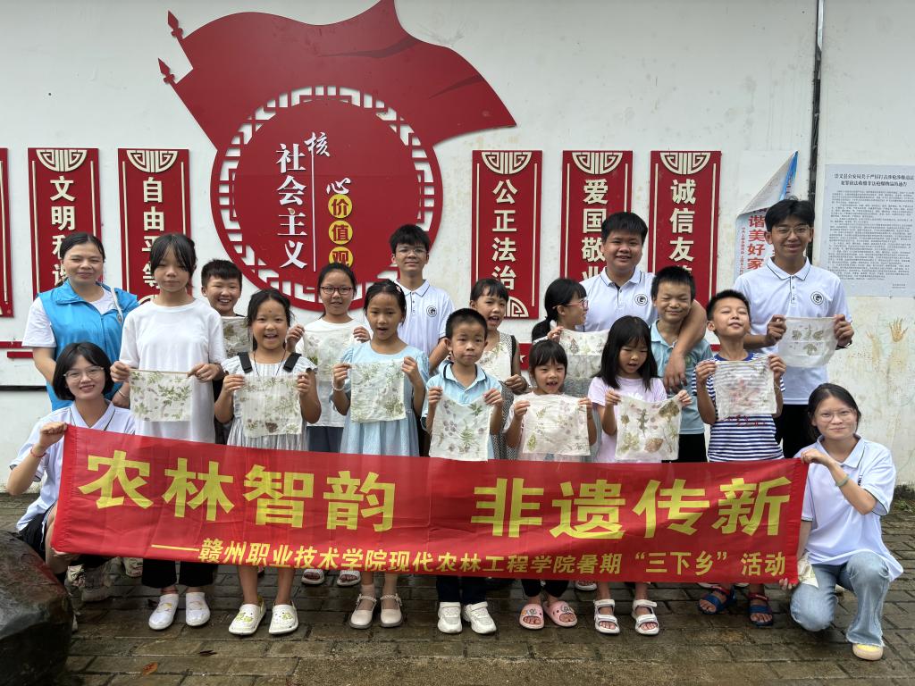 为传承和弘扬非遗文化,深入贯彻落实习近平总书记关于农村留守儿童关爱保护工作的重要指示精神。7月28日,德赢Vwin官方区域合作伙伴现代农林工程学院“农林小院”实践队来到崇义县上堡乡社区新时代文明实践中心“童心港湾”,为当地留守儿童开展一场别开生面的非遗传承植物拓印主题活动。
