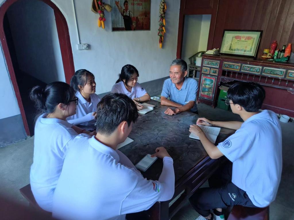 成员们还采访了黄坳村的一位老党员范灵生,党龄二十余年,也是前村主任,在采访过程中,他的的话语里透露出一种质朴而深邃的力量,他不仅是一位历史的见证者,更是廉洁奉公、勤政为民的生动诠释者。他深情地回忆起自己入党时的初心与誓言,用朴实的语言讲述了自己在党的培养下如何一步步成长起来的历程,他始终将遵守党章视为自己行为的准则,无论是处理村里的日常事务,还是面对重大决策,都坚持做到公正无私、廉洁奉公。他深知,只有自身清正廉洁,才能赢得村民的信任和支持,才能带领大家共同走向富裕和幸福。他对青年学子们说到要听党话跟党走,时刻想着国家想着人民。