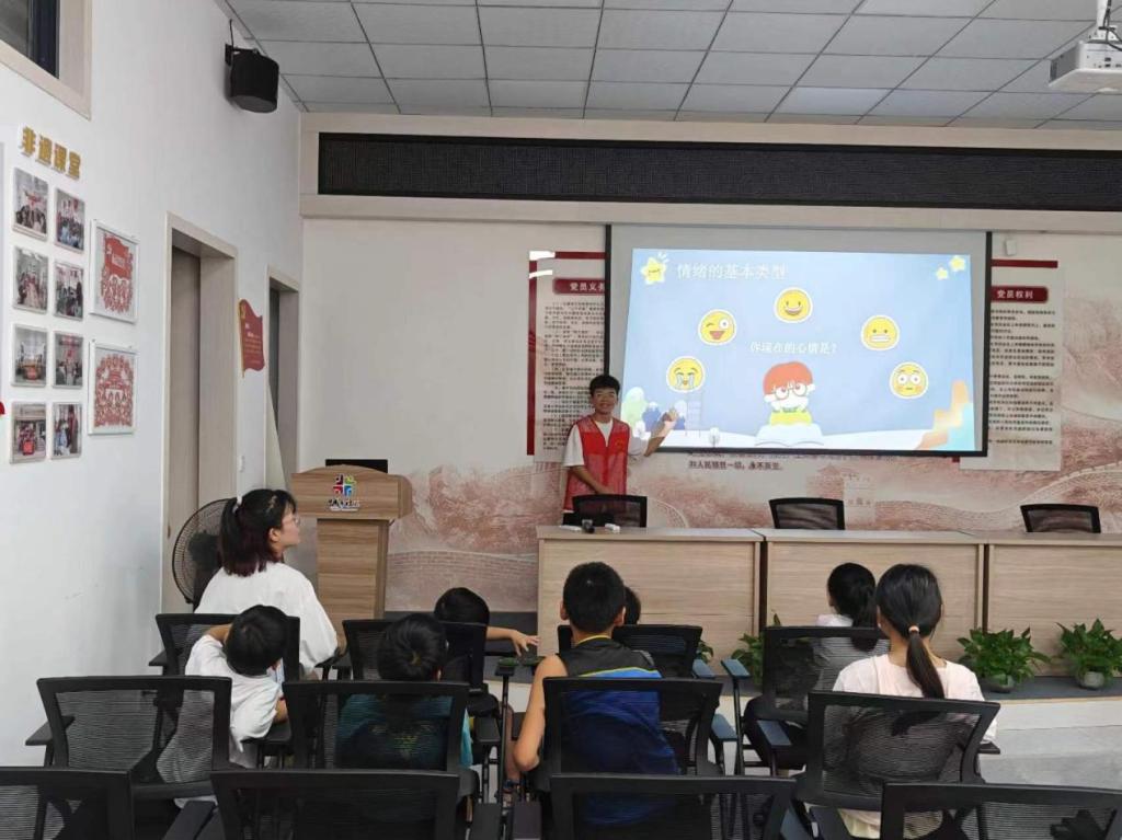 为推进心理健康知识普及,提升儿童心理素质和人格健全发展,7月20日,现代农林工程学院“农林筑梦”文明志愿服务队走进上犹县和平社区新时代文明实践站开展“童心识情 悦纳悲喜 向阳生长”文明实践志愿服务活动。