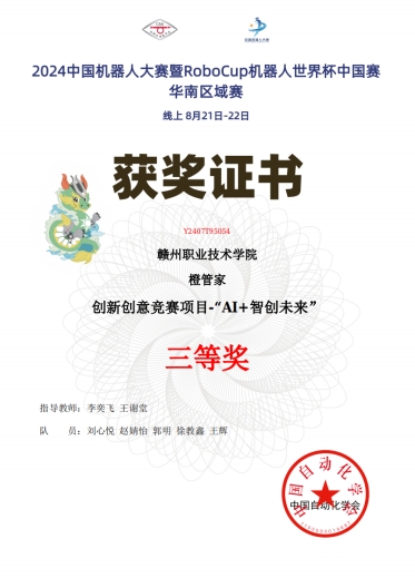 近日,2024中国机器人大赛华南区域赛成功举办,我院的学子们在2AI+智创未来赛项中展现出色表现,荣获省三等奖的殊荣。此次比赛为线上答辩模式进行,提供了一个显示我国高校学生在人工智能领域研究和实践能力的平台。