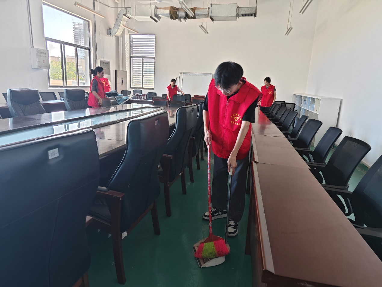 活动中,志愿者们走进教师流动教室和实训室进行清洁整理物品。大家积极主动地完成任务,不怕脏、不怕累,团结协作,整个活动开展地井然有序。