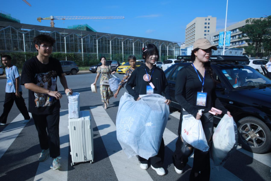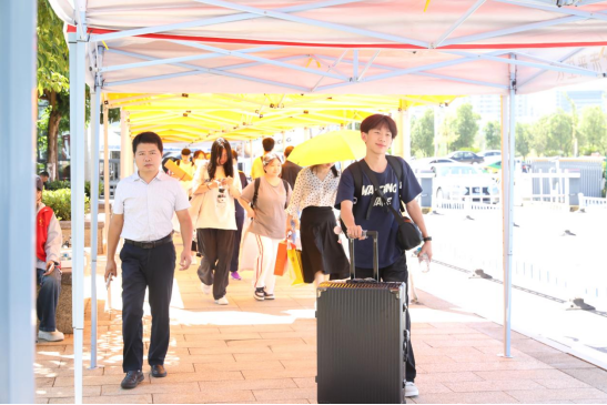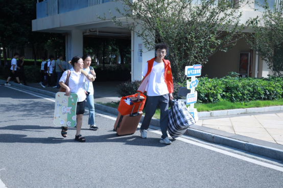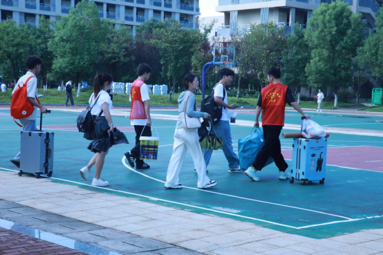 志愿者们一边提着行李,一边向新生们介绍校园的各个角落。他们的话语中充满了对校园的热爱和自豪,也让新生们对未来的大学生活充满了期待。