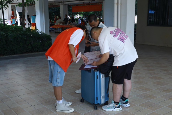 当新生们拖着行李,带着对未来的憧憬来到校门口时,志愿者们早已等候在此。他们热情地迎上前去,主动接过沉重的行囊。