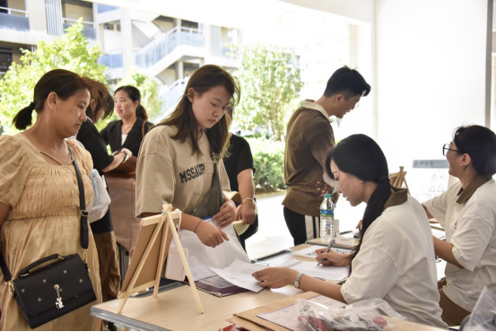 步入校园,色彩斑斓的横幅、温馨的欢迎标语、创意十足的展板映入眼帘,每一处细节都透露着学校对新生的热烈欢迎。各二级学院更是别出心裁,纷纷亮出自家“法宝”:艺术设计学院则展示了学生毕业设计作品,激发新生对专业的浓厚兴趣;现代服务学院则用美妙的音乐与画作,营造出浓厚的艺术氛围……每一处特色迎新点都成为了新生们打卡留念的热门地。