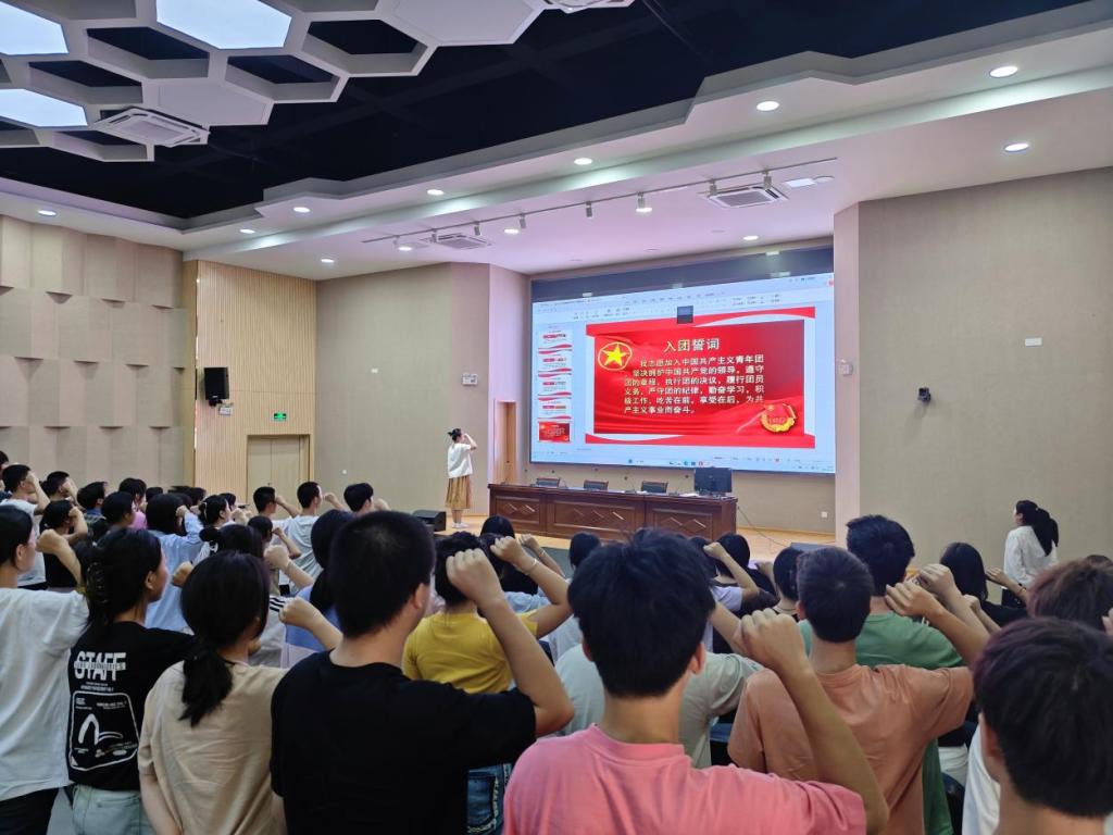 全体团员在肖蔚老师的带领下,齐声重温入团誓词,进一步唤醒了新生团员的身份意识,增强了新生团员的光荣感与使命感。