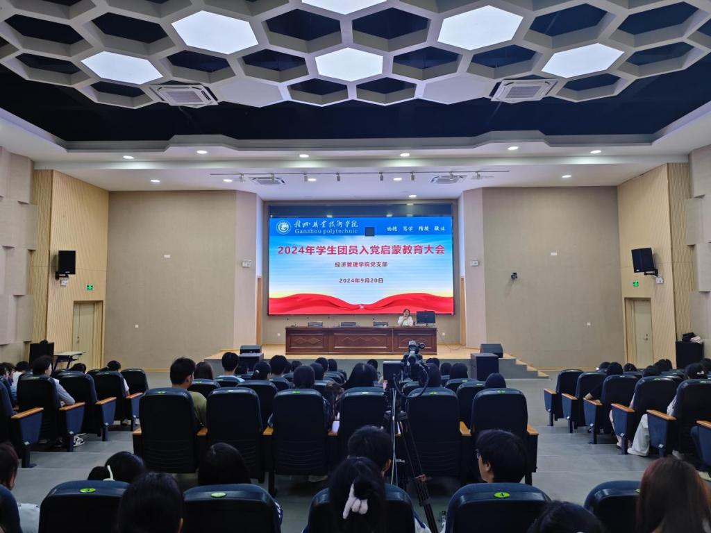 为培养新生团员政治意识,加强学生团员思想上的先进性,动员学生团员积极向党组织靠拢,9月20日,经济管理学院党支部在公共实训基地报告厅,举办了学生团员入党启蒙教育大会。大会由支部宣传委员李闽主持,经济管理学院2024级共青团员全体参会。