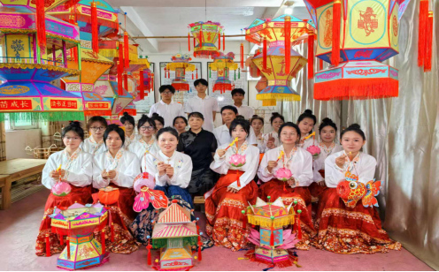 随后,青马学社师生在江西省省级非遗赣县田村花灯传承人刘云武、谢团秀夫妇家中,共同学习、制作花灯。田村花灯,作为一种民间艺术,在庆祝节日时我们经常会用到,现在的田村花灯,既继承了传统的花灯艺术特色,又有民间艺人在花灯上的创新和发展,把现代的高科技与古老的花灯艺术融于一体,更显得绚丽通明,光彩夺目。