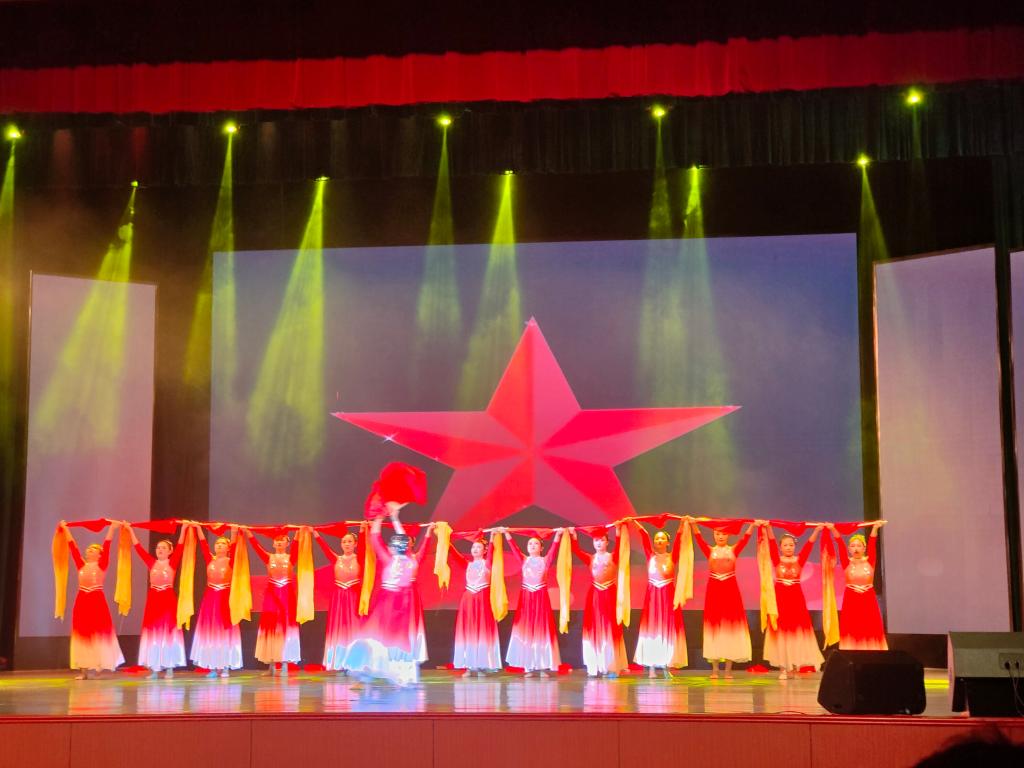 学校知联会会长余万霞参与市知联会选送的《我和我的祖国》合唱表演,知联会理事陈丽嫔老师指导群舞《星星之火》。节目精彩纷呈,演员们通过激情澎湃的表演,带领观众回顾了新中国成立初期的艰辛历程和人民的不懈奋斗,展示了改革开放以来中国取得的巨大成就和人民生活的巨大变化,展望了中华民族伟大复兴的光明前景。