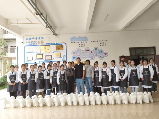 一直以来,学校积极开展“岗课赛证”融通的专业建设和课程建设。动物科学学院在理实结合的基础上,在《宠物护理与美容》课程中,结合“1+X”证书制度,以宠物美容行业职业活动和工作过程为导向,把“1+X”宠物美容考核内容植入课程、融入考核,多维度优化课程效果,实现了基于行业与岗位实际需求的课程建设。