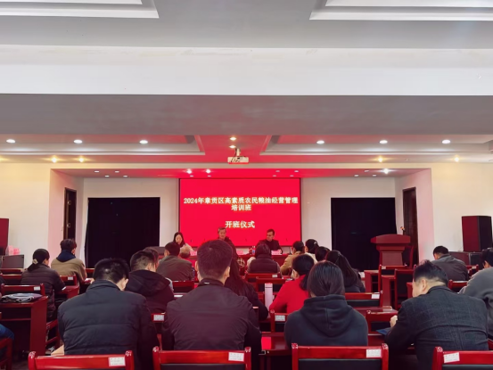 在开班仪式上,继续教育学院对学校办学情况进行介绍,章贡区农业农村局局长孙军发表了致辞,强调了高素质农民培训对于推动章贡区粮油产业现代化、保障粮食安全以及促进农民增收的重要意义。他指出随着农业科技的不断发展和市场需求的日益变化,培养一批懂技术、善经营、会管理的高素质农民队伍迫在眉睫,而此次粮油培训班正是为此量身打造。