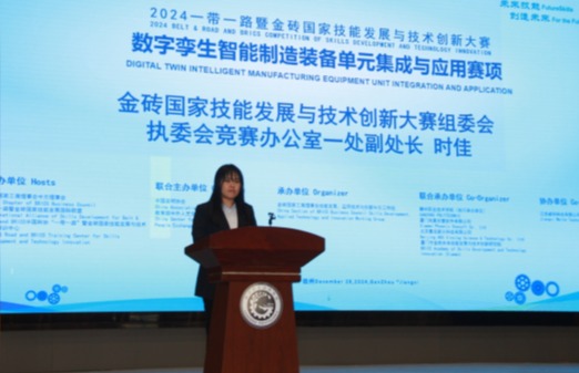 金砖国家技能发展与技术创新大赛组委会执委会竞赛办公室一处副处长时佳讲话并宣布闭幕