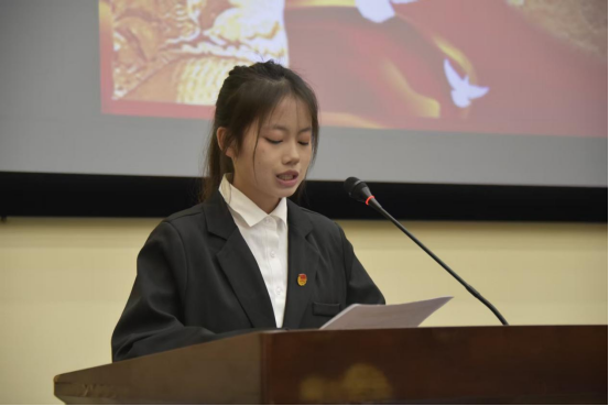 学生代表邓诗语同学也发表了精彩发言。她分享了自己在寒假期间参加“返家乡”活动的经历,在家乡的志愿服务经历,让她仿佛走进了雷锋精神的现实课堂,对雷锋精神也有了更深的体会。她向同学们发出邀约,用实际行动来讲述新时代的雷锋故事,用志愿热情来弘扬永不褪色的雷锋精神,做新时代的雷锋传人!