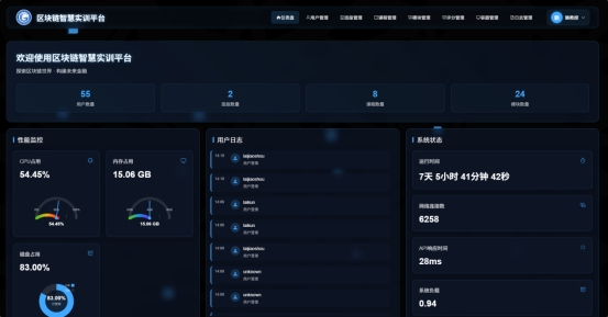 深夜的信息工程学院实训室灯火通明,00后大二学生赖琨指尖在键盘飞速跃动,一行行代码如数字星河倾泻于屏幕。这位被师生誉为“区块链极客”的青年,在学院信息技术应用创新与网络安全教学团队的指导下,仅用一个月时间,便成功构建了“三位一体”区块链智慧实训平台。该平台将教学演示与实训练习深度融合,为高校区块链教学实践创新注入强劲动能。