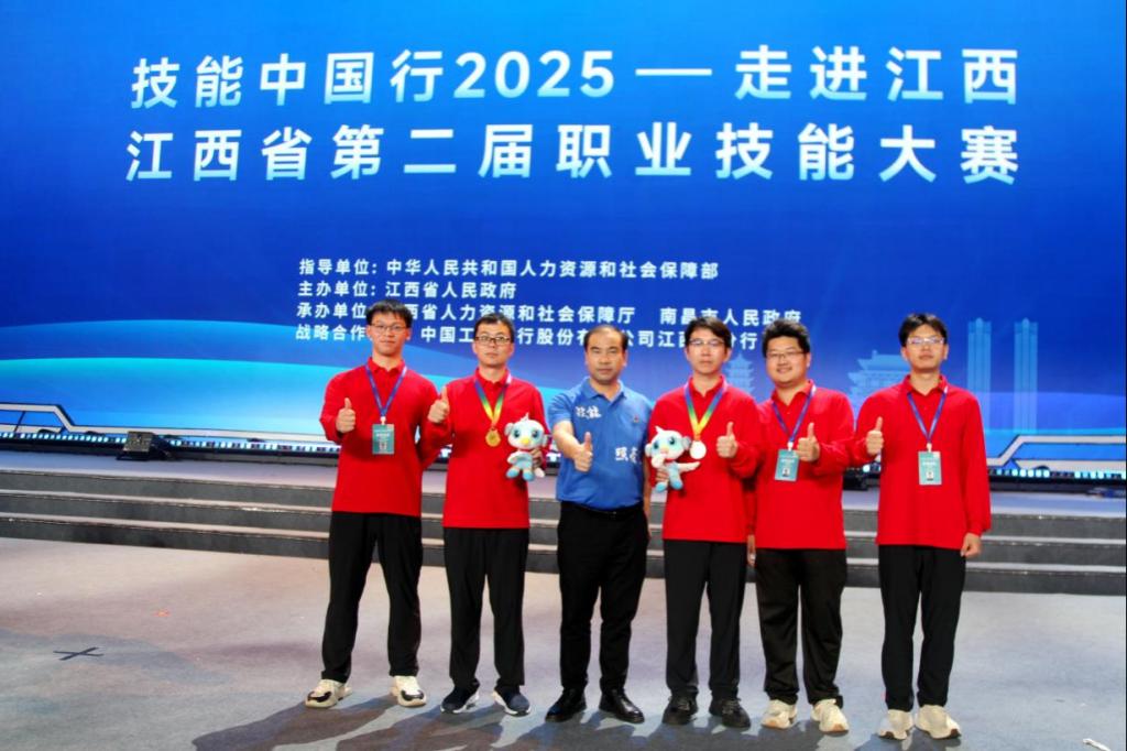 近日,在江西省第二届职业技能大赛中,智能制造学院师生凭借精湛技艺和拼搏精神勇创佳绩,一举摘得3金2铜,是智能制造学院党员教师践行“为党育人、为国育才”初心使命取得的又一硕果。此次大赛由江西省人民政府主办,省人力资源和社会保障厅、南昌市人民政府承办,来自全省16个代表队的千余名选手同场竞技。学院在工业机械、设备点检、自主移动机器人、装配钳工等赛项中表现亮眼,其中智能制造学院教师党支部党员卢培文、冯发勇、刘嘉虎、丁接荣领衔指导,以先锋模范作用引领教师成长、助力学生成才,成为赛场内外的“红色引擎,智造先锋”。
