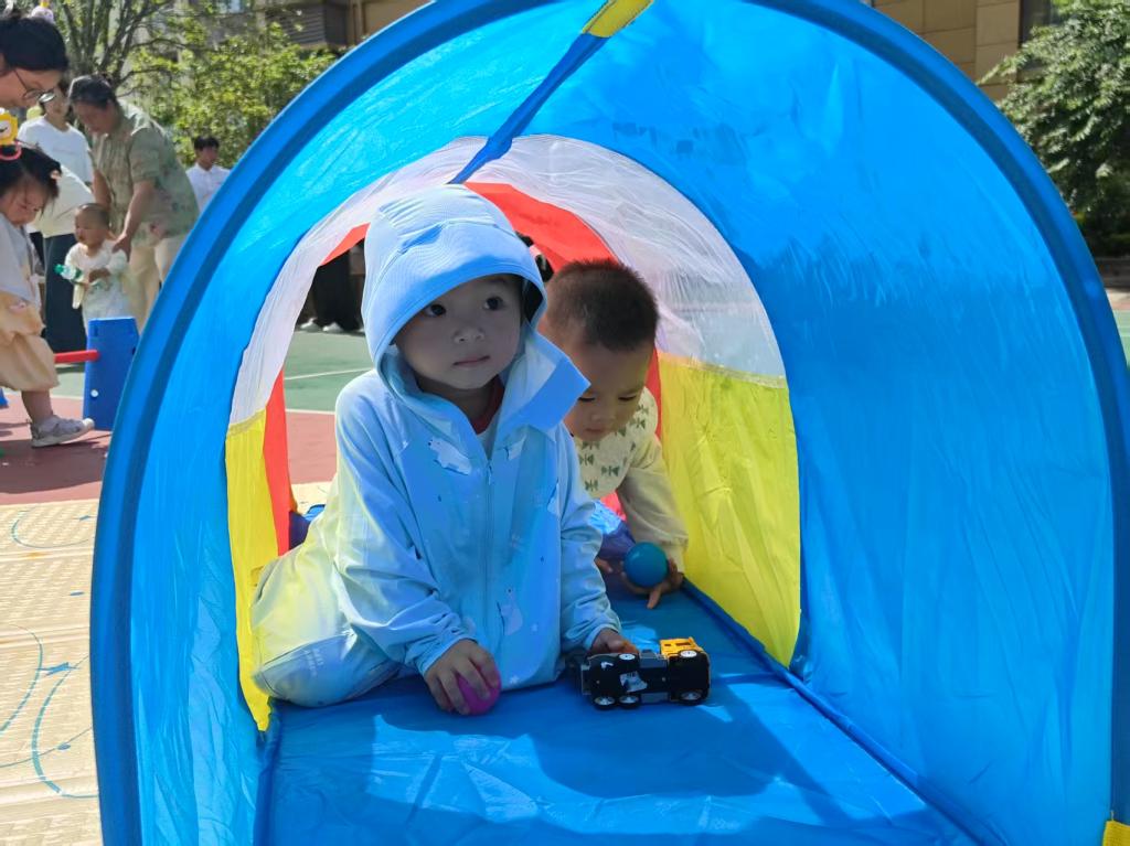 活动吸引了近20组家庭参与,现场设置了健康体检区、亲子游戏区、知识科普区等多个功能区,全程由托育专业学生提供专业服务。亲子游戏区包含三大板块:专为6 - 18个月宝宝设计的萌宝爬爬赛,有柔软地垫和玩具逗引,宝贝冲刺家长加油;彩虹伞奇幻世界里,超大彩虹伞下家长和小老师晃动伞边,宝贝穿梭其中感受光影色彩,增进亲子互动;万象组合探险提供钻洞、平衡木等器材,宝贝探索时锻炼大肌肉,培养勇气与协调性。