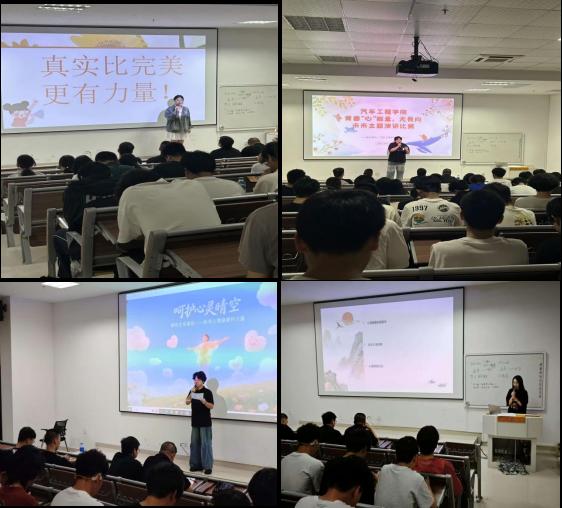 比赛现场,来自汽车工程学院不同专业、不同年级的8名参赛选手依次登台,以饱满的热情、真挚的情感和铿锵有力的语言,深情诠释着对心理健康的深刻理解与感悟。他们或结合自身经历,讲述在面对学业压力、人际交往困惑时如何调整心态,实现自我成长;或分享身边同学战胜心理困境的励志故事,传递积极向上的正能量;又或是引用心理学知识和名人名言,从理论高度剖析心理健康的重要性。选手们饱含深情的演讲,如同磁石般吸引着观众,不时激起现场阵阵掌声,将比赛气氛推向一个又一个高潮。