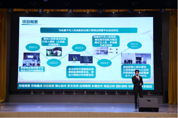 决赛现场,来自不同学院的参赛团队通过项目路演、实物展示、专家答辩等环节展开激烈角逐。入围项目涵盖智能制造、数字经济、乡村振兴、文化创意等多个领域,充分体现了学院各专业的办学特色。信息工程学院推荐项目《基于区块链的钨产业全生命周期可信管理平台》凭借其技术创新性获得评委高度评价;现代农林工程学院推荐项目《智慧农管——果蔬大棚一站式服务管家》则以显著的专业性价值赢得关注。