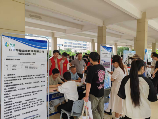 除实习岗位招聘外,双选会同步开展企业宣讲会及校企合作座谈会。上海邦成生物工程有限公司、福建光华百斯特生态农牧发展有限公司、江西华裕家禽育种有限公司、华农恒青科技股份有限公司、江西申丰牧业有限公司等企业通过分会场宣讲,详细介绍企业培养体系与职业发展路径,吸引大批学生驻足。
