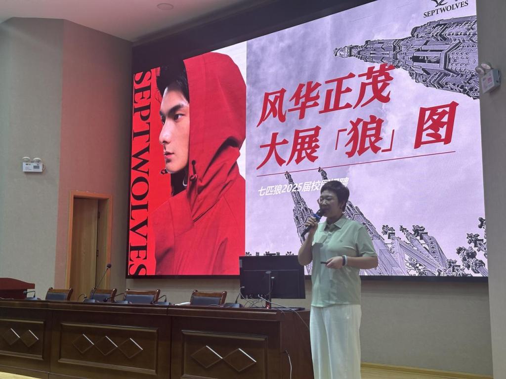 福建七匹狼实业股份有限公司以其多元化的品牌战略和强大的市场竞争力,吸引了众多学生的目光,企业代表分享了在服装设计、供应链管理等方面的实习项目及职业发展规划。