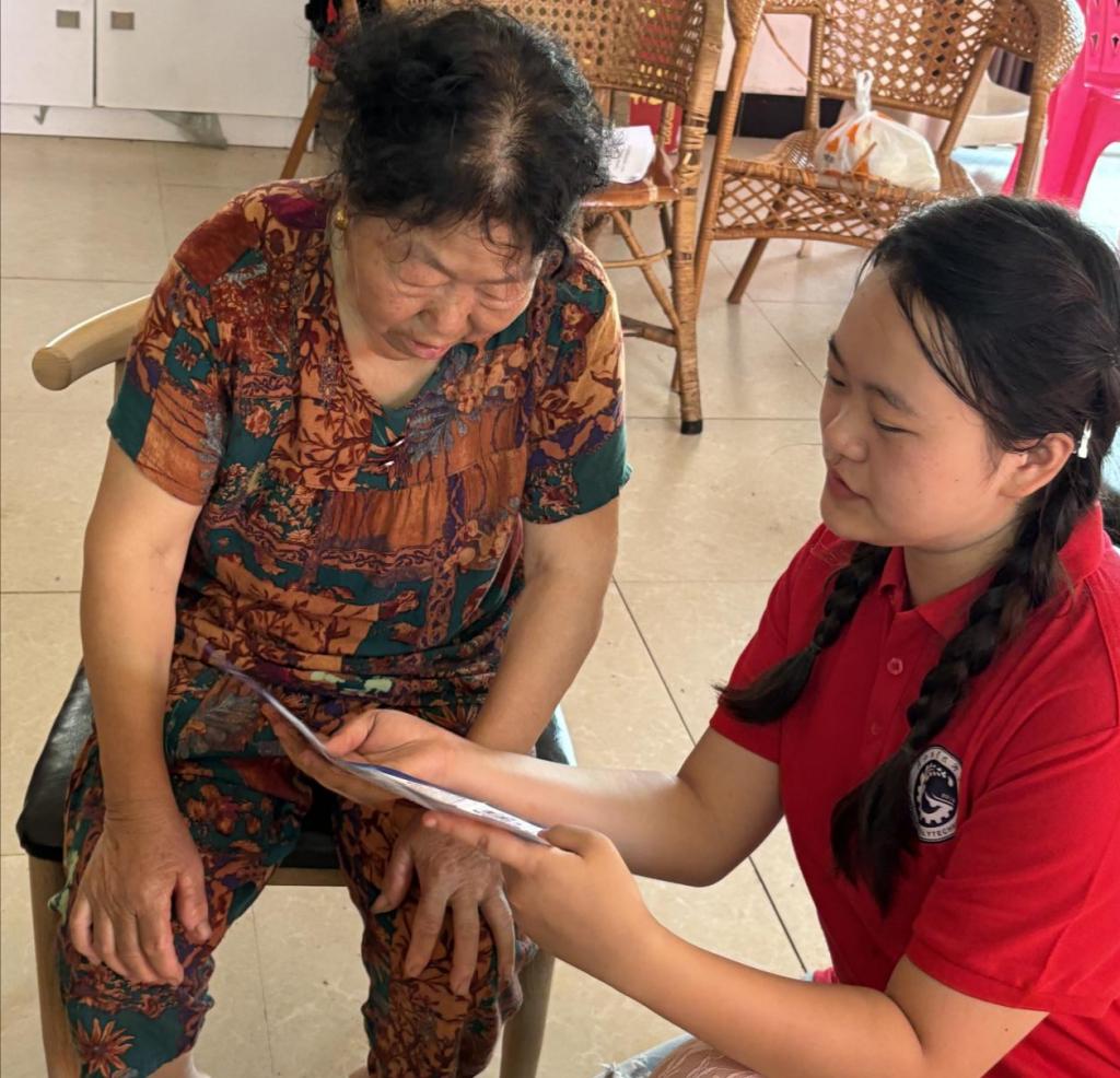 健康管理夯实银发健康基石。健康养老专业学子依托《老年健康服务与管理》课程体系,为50余位老人开展标准化健康服务:规范测量血压、建立个性化档案,并针对血压异常者提供膳食、运动、情绪调节“三位一体”指导。“王奶奶,每天八段锦锻炼有助于调节血压”,队员温洁结合中医养生知识提供精准服务,这一过程既将课堂理论转化为实践技能,更助力基层养老服务体系建设。