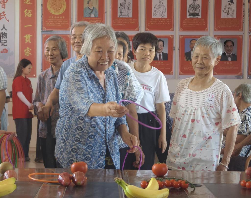 文化惠民点亮乡村精神灯塔。田坞村文化服务中心内,“趣味水果套圈+健康知识问答”活动热闹开展。50余位老人围聚在摆放苹果、桃子、香蕉的桌台前,手持塑料圈凝神聚力、精准投掷,在享受游戏乐趣的同时,也锻炼了手眼协调能力。活动中还创新融入健康知识问答环节,将“三高防治”“合理用药”等知识融入游戏,实现“寓教于乐、以动促健”“文化+健康”创新模式为乡村文化振兴注入了活力。