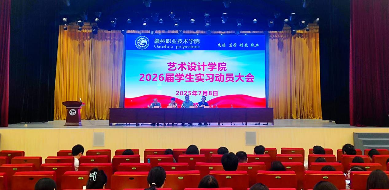 7月8日下午,艺术设计学院2026届毕业生实习动员大会在行知楼一楼报告厅举行。艺术设计学院党总支书记林洪斌,院长余万霞,副院长李能巡、张晔,毕业班辅导员(班主任)、实习指导老师以及2026届毕业班全体学生共计700余人参加,共同为即将开启的实习征程做好准备。本次大会由林洪斌主持。