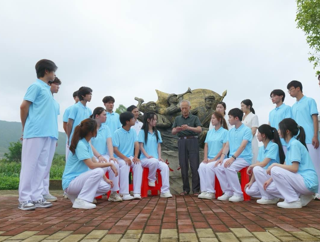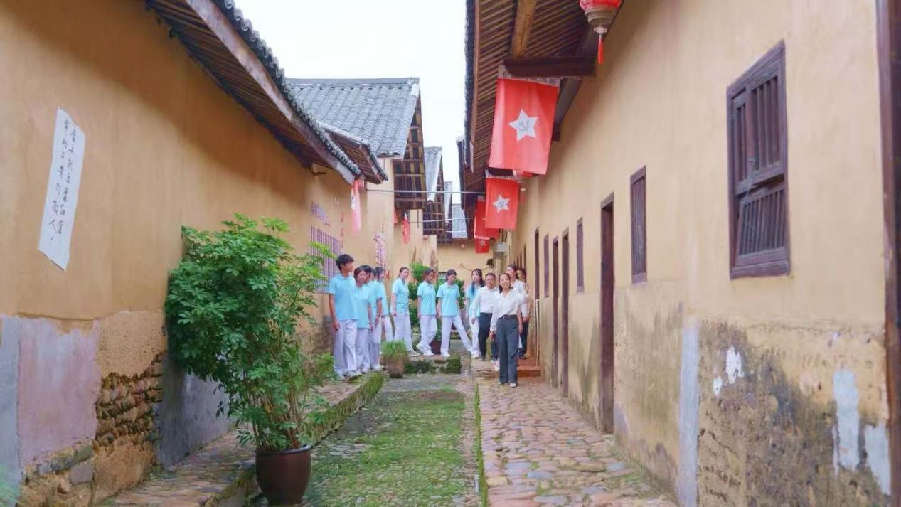 课程以一枚苏维埃硬币为载体,通过实地走访,采用舞蹈、歌曲、朗诵的艺术形式,构建起富有感染力的教学场景。教师带领学生实地走访龙南市金盆山战役旧址、红军被俘关押地月屋围及烟园围。学生通过聆听这枚苏维埃硬币持有者的后代深情讲述红色故事,学唱红色歌曲《当兵就要当红军》,深刻感受到了“军民鱼水情”和“革命理想高于天”“廉洁奉公”等革命精神品质。同时,通过舞蹈《红色记忆》、歌曲《告别》、朗诵《薪火相传——新青年的使命》等,生动诠释了革命信仰的传承,激发了学生对本土红色文化的认同感和自豪感,厚植了家国情怀,强化了“强国有我”的使命担当,实现从历史感悟到行动践行的认知升华。