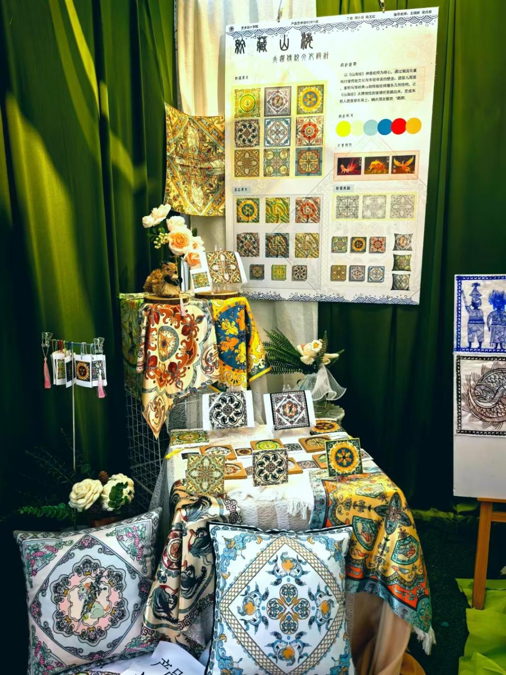 广告艺术设计作品将非遗符号融入现代视觉语言,海报与品牌策划兼具文化厚重感与视觉张力;产品设计展厅里,中国传统工艺与实用功能碰撞,从每件作品都透着对民族文化的深挖;数字媒体专业以VR、动画等技术活化非遗,让古老故事在虚拟空间焕新彩;服装展区更成传统与时尚的秀场,非遗纹样与现代剪裁结合,演绎文化传承的多样可能。