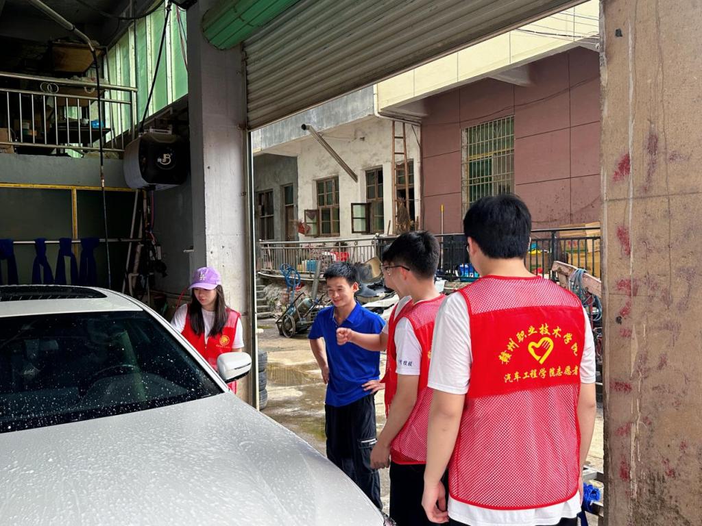 结合专业特色,实践队将“汽车养护课堂”搬到乡村洗车店。在狭窄的巷道内,志愿者们熟练操作高压水枪、擦拭车身,为当地车辆提供免费清洗服务。其中一位车主连连称赞:“学生们技术专业,服务热情,真是帮了大忙!”此外,队员们向洗车店员工传授车辆保养技巧,交流行业新动态,推动专业技能与乡村需求精准对接,既检验了学生的实操能力,也为乡亲们带去了实用技术。