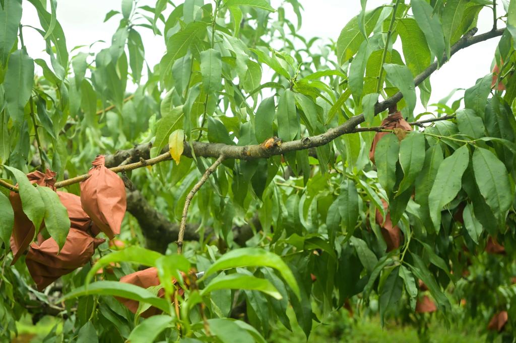 随后在与蒋大华的交谈中,队员们了解到浓郁的果香背后是精细的管理,“春季惊蛰后精准用药防虫保果,结合剪枝、抹芽预留次年结果母枝,疏果控制负载量(每枝1-3个)保障品质;夏季套袋隔绝污染,按物候期(7月10-20日)采收销售;秋后通过割草、清园维持园地生态;冬季修剪调整树体结构,配合含多效唑的冬肥调控生长;形成一套兼顾生长调控与果实管理的技术体系”。