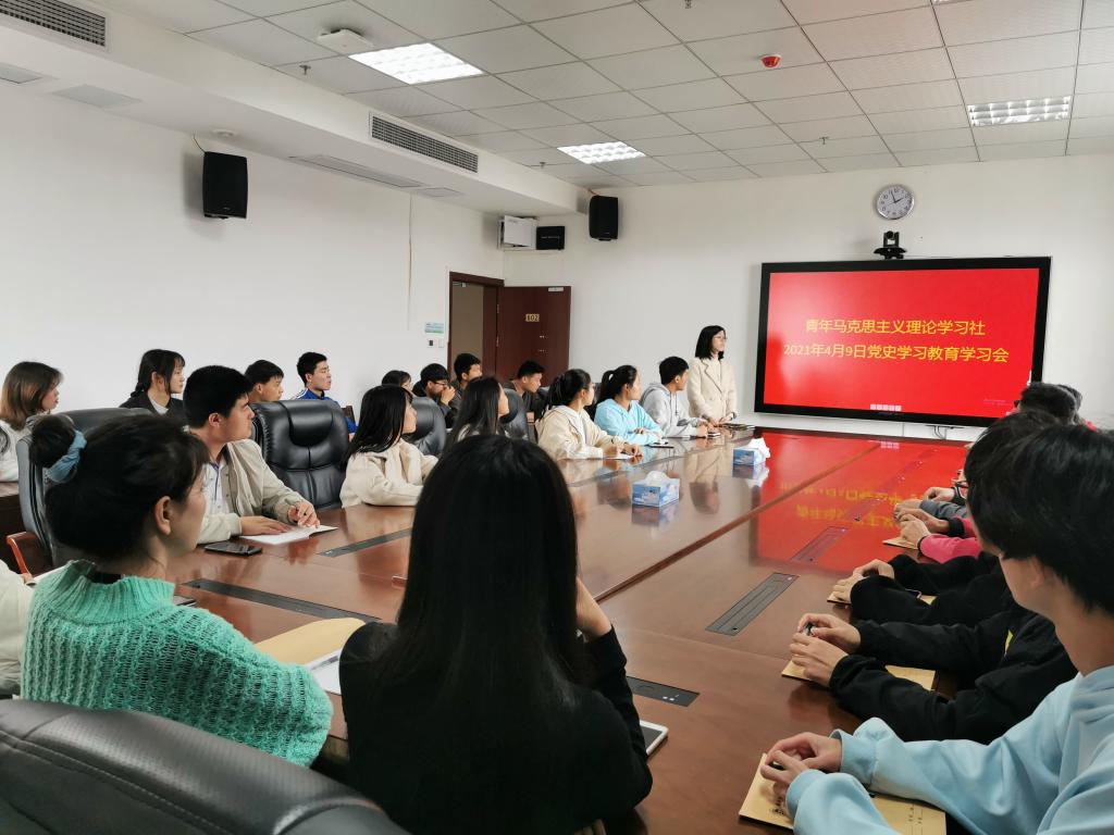 4月9日中午,青年马克思主义理论学习社(以下简称为青马学社)在行知楼602会议室举行党史学习教育学习会,青马学社成员、宣传统战部、马克思主义学院负责人和思政教师代表参加了学习会。