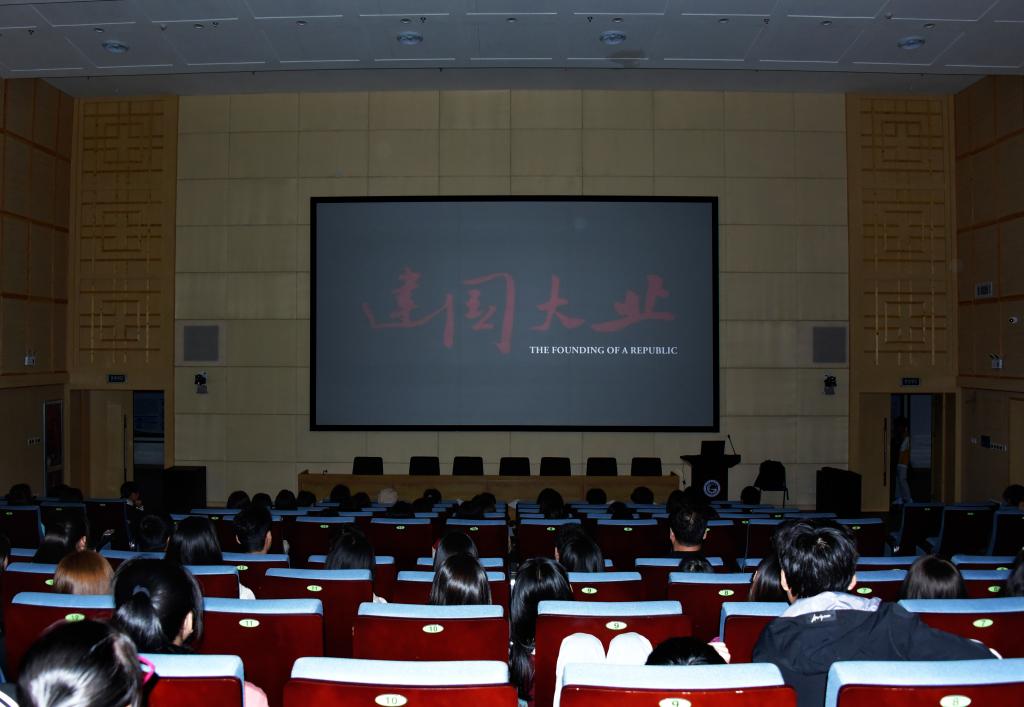 4月14日晚上,党委书记邹志华、分管领导汤晓军,宣传统战部、学生工作处、团委、各党支部等相关人员,以及部分教师代表,一起参与观看红色电影《建国大业》。