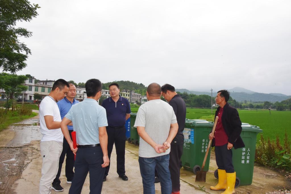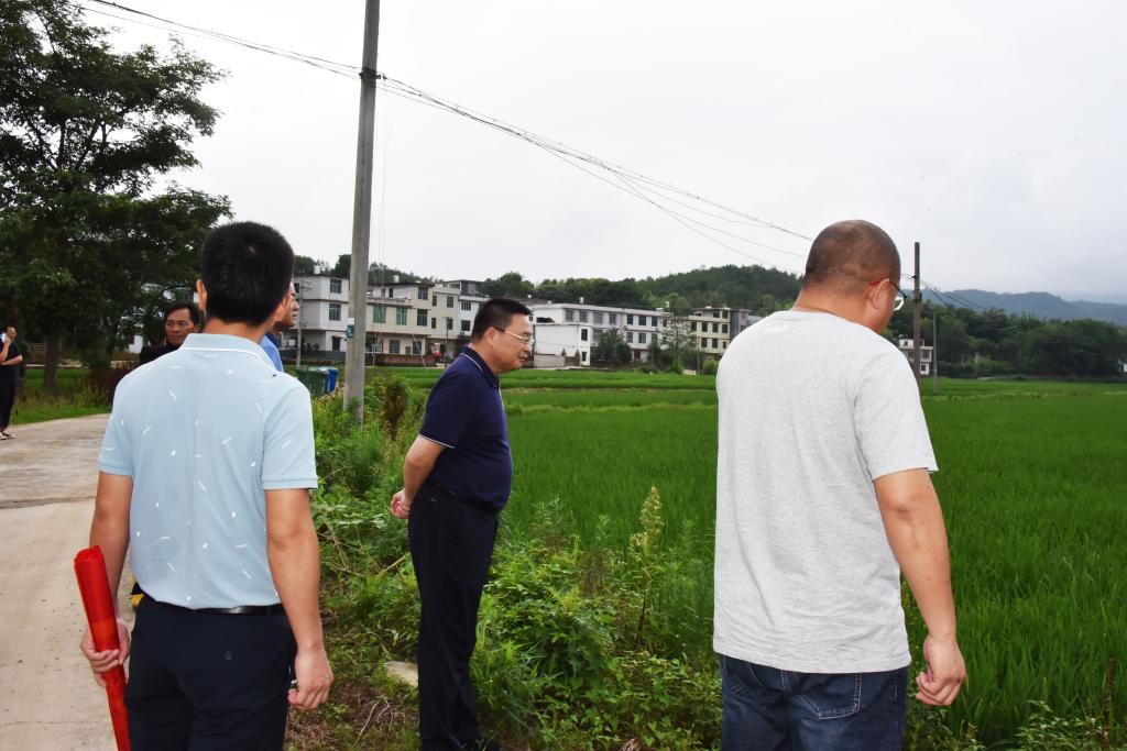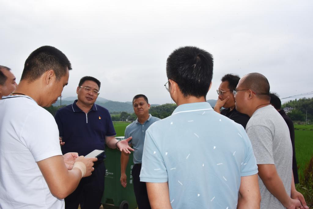 邹志华等一行人深入基地田间地头,实地查看了水稻的苗情长势及病虫害防治情况,并听取企业负责人邓峰的介绍。邓峰介绍,基地主要经营生猪养殖、水稻栽种和油茶种植,采用“公司+合作社+农户”的模式运行。并就在水稻栽培过程中如何有效利用养殖场粪污沼液、如何开展病虫害防治、如何选择优良品种等技术难题进行了咨询。