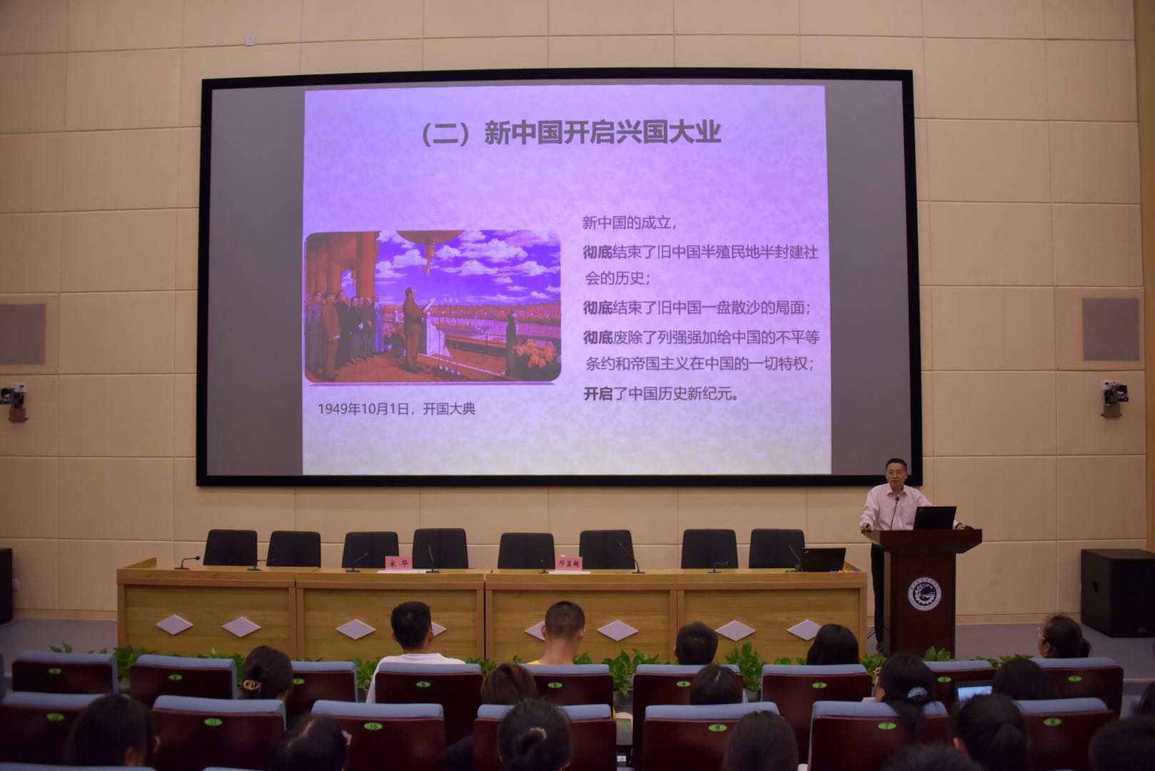 此次活动分为三部分,首先江西理工大学副院长、教授邓显超给大家讲授了一堂主题为“中国特色社会主义进入新时代”的党史教学专题课。邓显超副院长从中国共产党百年奋斗的光辉历程、进入中国特色社会主义新时代、伟大的民族复兴必将在新时代实现三方面阐述了中国共产党是如何发展成长的历史,中国特色社会主义为什么进入了新时代,中华民族伟大复兴的中国梦为什么能实现?整堂课环节紧凑,重难点突出。邓教授上课风格幽默,能将晦涩难懂的理论用通俗易懂的语言讲述出来,课堂上他滔滔不绝、侃侃而谈,学生们听得津津有味、陶醉其中。